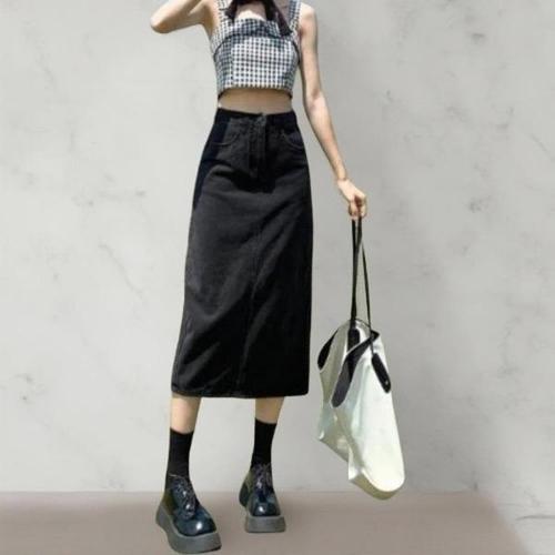 투니스 여성 하이웨이스트 슬릿 롱 데님 스커트