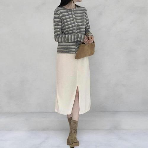 [최초가 109000원] 케이블 니트 사이드 슬릿 스커트_LKSKF124004