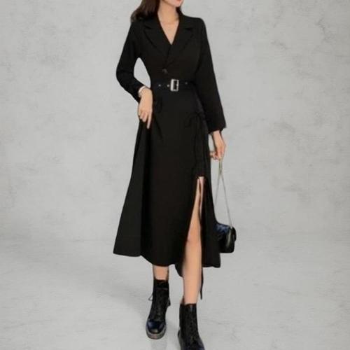 [다잇템][다잇템] 여성 치마 베이직 혁대 슬릿 롱 카라넥 원피스_23740533_588872