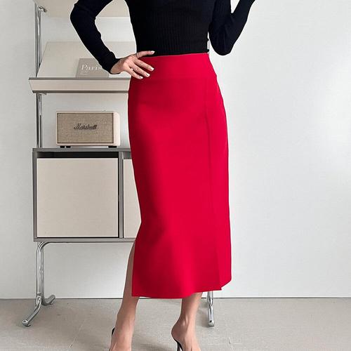 [옷자락]여자 절개 슬릿 앞트임 H라인 쫀쫀스판 밴딩 롱스커트_3