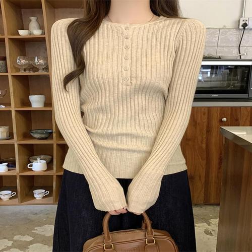 [모어오브]시드니 니트 반오픈 골지 긴팔 탑