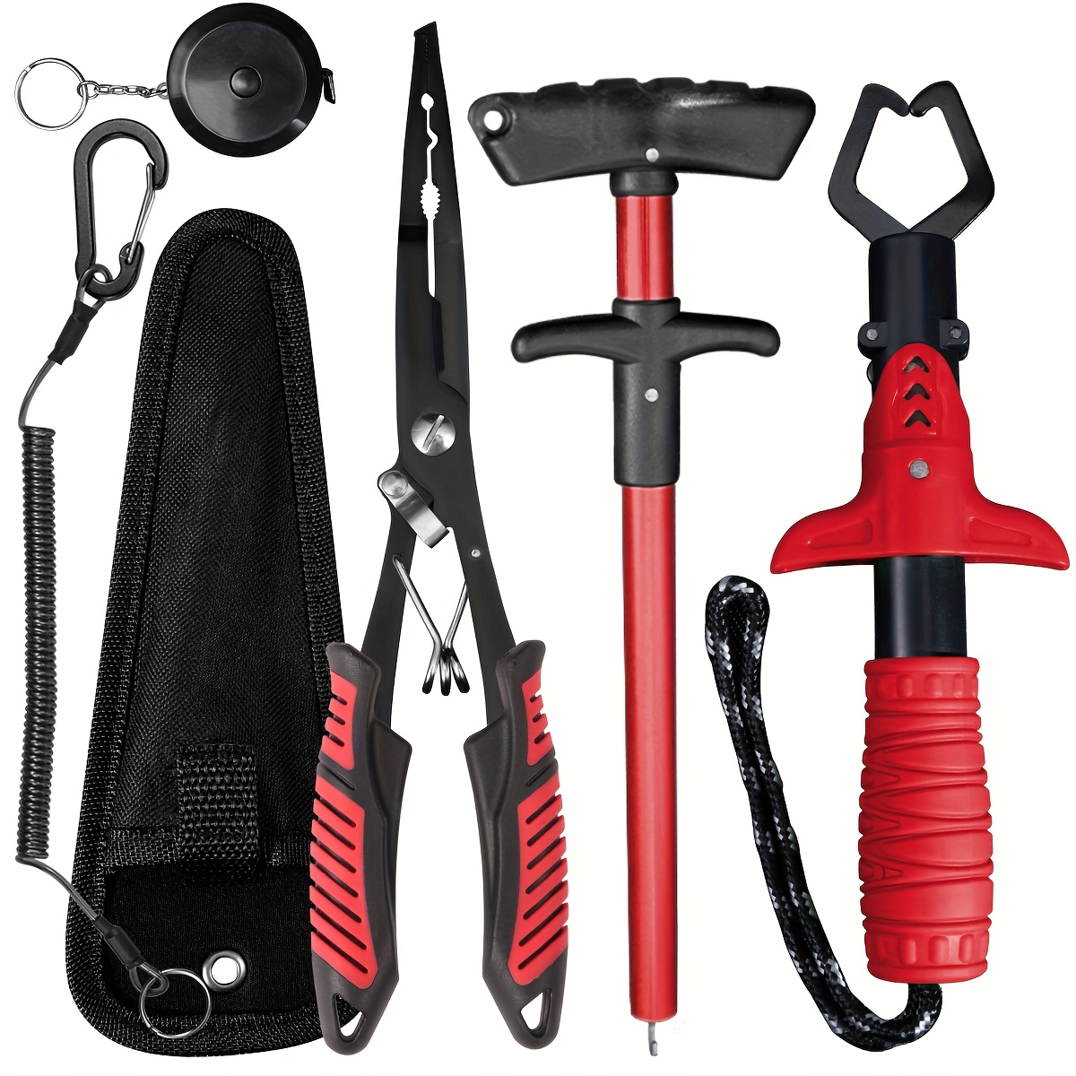 TEMU RALERA 낚시 키트 | 훨씬 더 나은 바늘 제거 및 링 커터를 위한 확장형 스테인리스 스틸 낚시 플라이어, 물고기 입 플라이어, 바늘 제거기, 보관 가방, 보호 장갑, 60인치 물고기 측정 테이프, 이상적인 크리스마스 선물, 배터리 없음|줄자