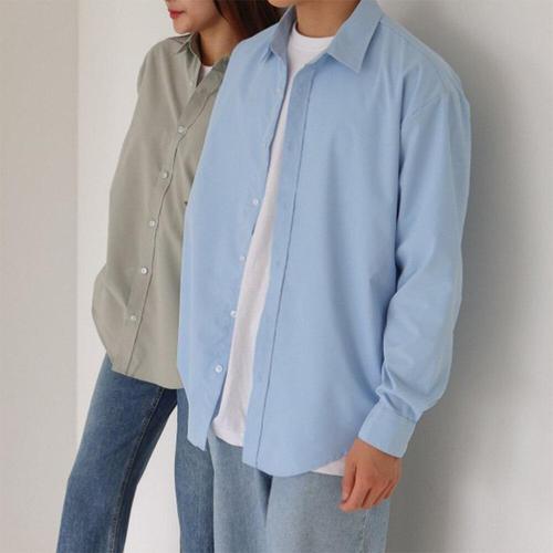 [다잇템]여자 남자 시밀러 클래식 박시핏 민무늬 셔츠_4