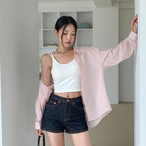 여자 여름 시스루 3컬러 롱슬리브 크롭 셔츠