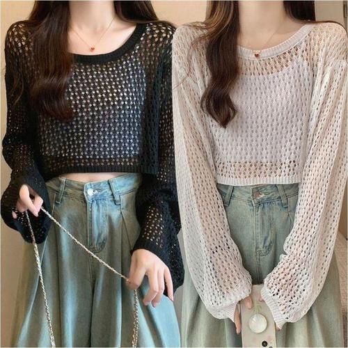 [에이치플러스몰]시스루 망사니트 커버업 여성 루즈핏 비치웨어 긴팔 5색