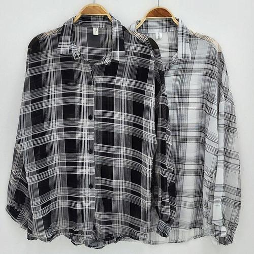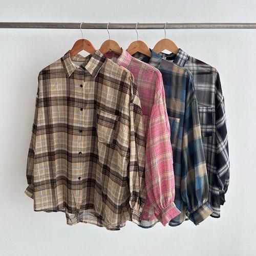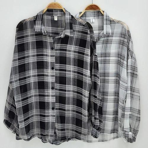 옷자락 / 여성 시스루 쉬폰 체크 가을 루즈핏 셔츠 커버업