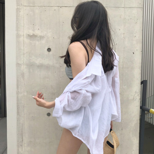 더클립 / 커버업 크랜베리 거즈면 시스루 셔츠 남방