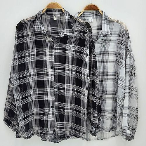 여자 아사남방 시스루 커버업 체크 봄 셔츠_4