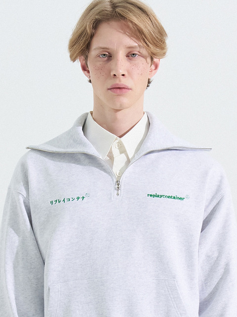 [리플레이 컨테이너] double logo long half zipup mtm (white melange)