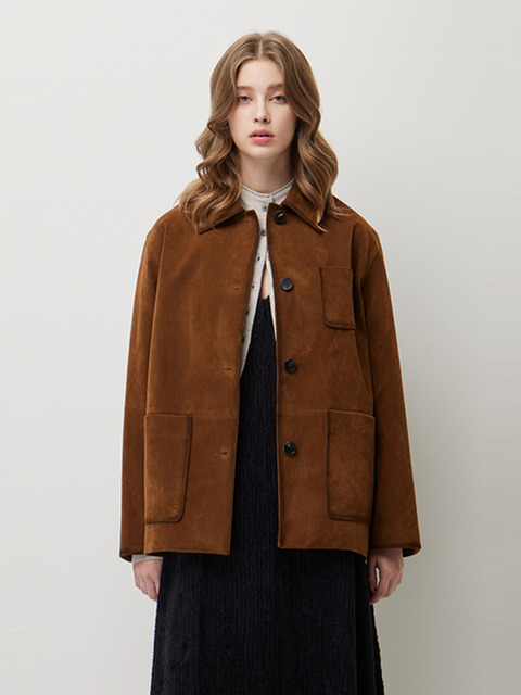 갤러리아_시슬리 [25가을] 스웨이드 배색 양가죽 셔츠형 자켓 SALE01511