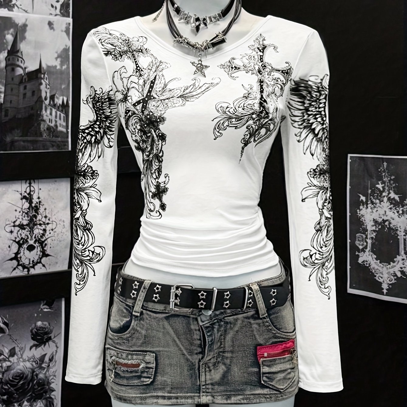 TEMU 여성용 트렌디하고 독특한 디자인의 빈티지 Y2K 핏 롱 슬리브 티셔츠