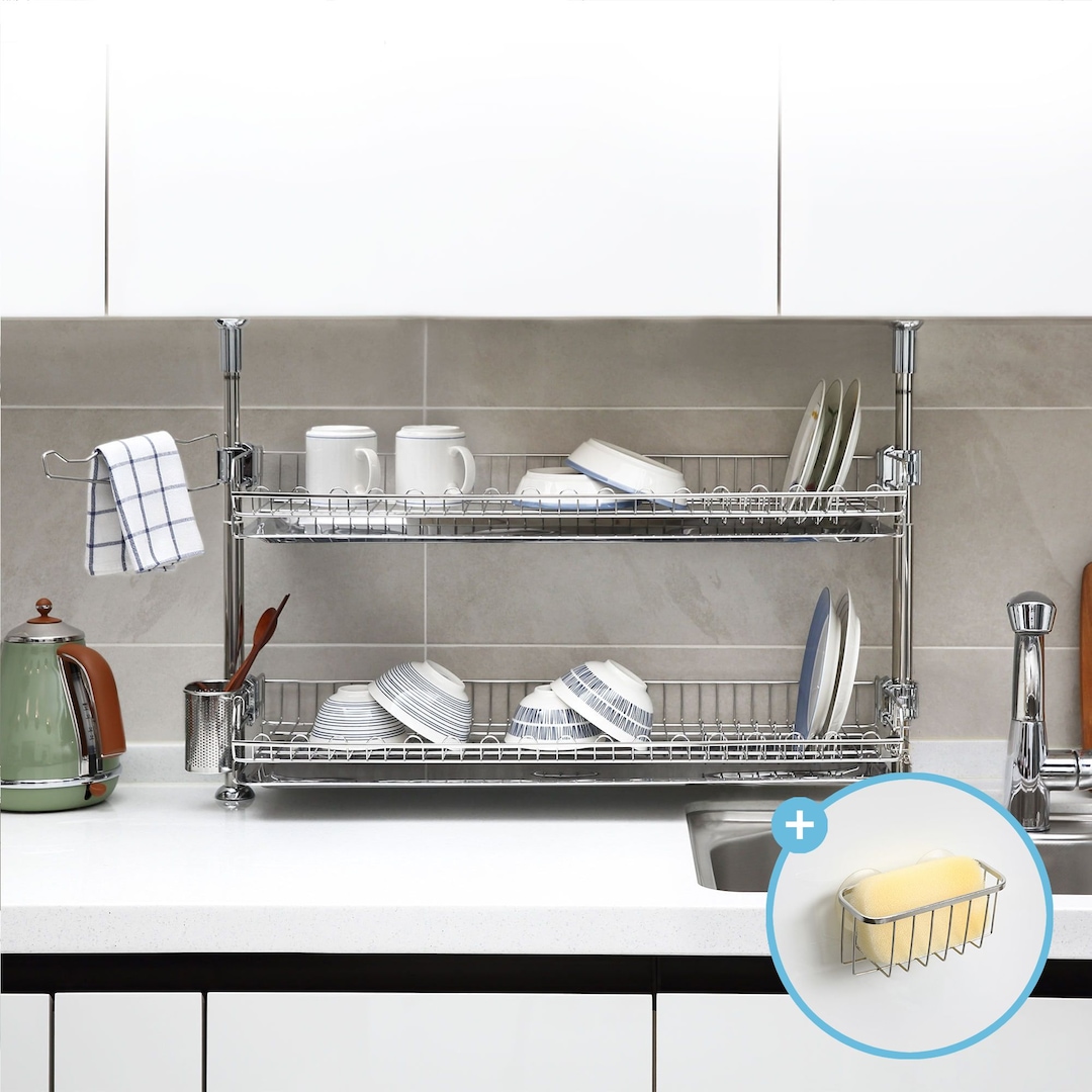 디허브 압연 스텐 싱크선반800 2단 원터치 식기건조대 그릇 설거지 정리 기둥식 주방수납