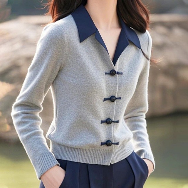 Latium HC06 깔끔한 레이스 리본넥 배색 앞오픈 가디건형 반팔 신데렐라 니트티 T2523sw06