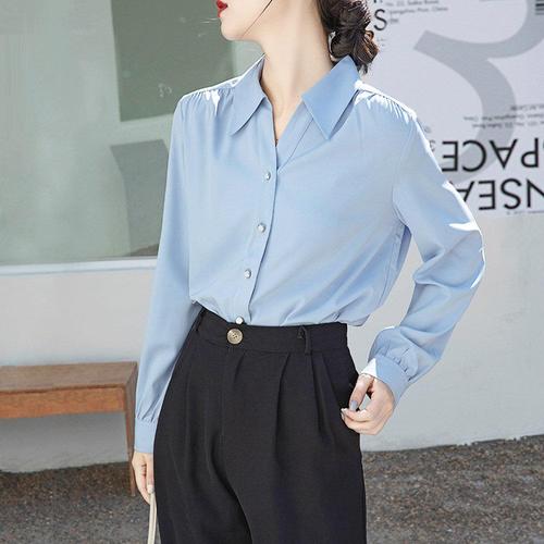 [샵앤][샵앤] [무료배송] 여성 간절기 오피스룩 카라넥 긴팔 블라우스 3종 균일가 WDM-WBL
