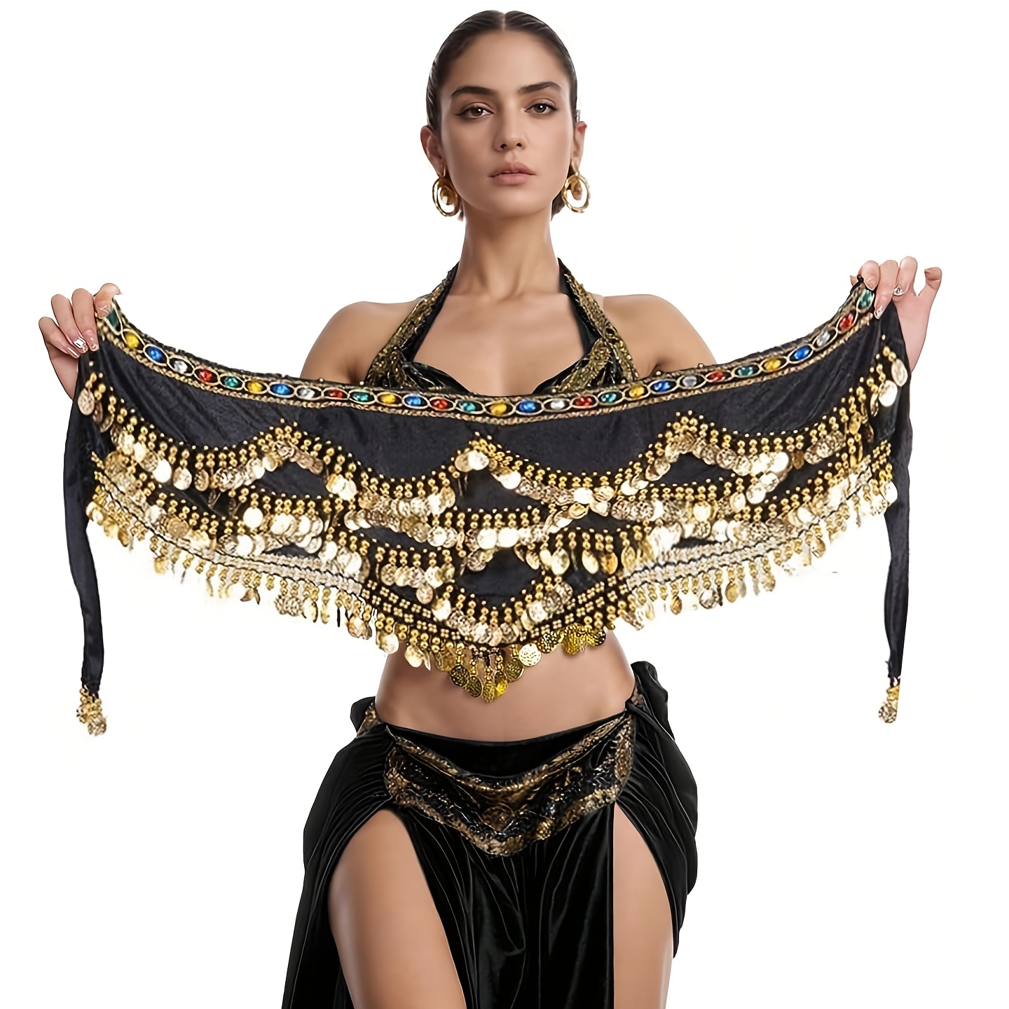 TEMU 여성용 인어 벨리댄스 힙 벨트 & 스커트 - 반짝이는 골드 코인 태슬 시퀸 랩, 중동 의상, 페스티벌, 카니발, 파티 드레스 액세서리