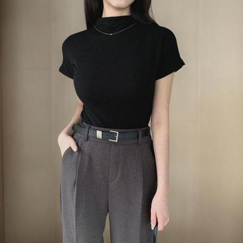 [신상오픈런]여성용 데일리 레이온 스판 반목 기모 반팔티