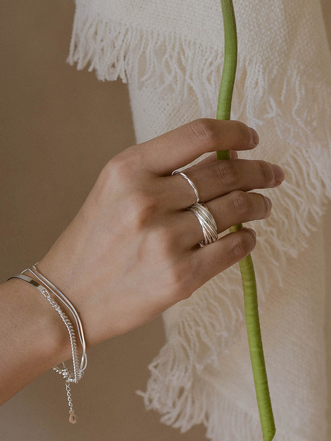 갤러리아 14K 위빙 플랫 체인 반지 소