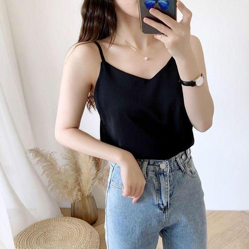 슬리브리스 실크느낌 나시 여자 V넥 이너 민소매 WFLQ8BA