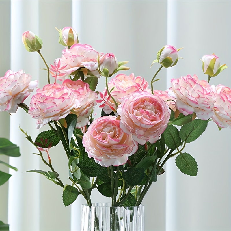 TEMU 3개 세트 실물 같은 실크 모란 꽃과 개화 봉오리 - 웨딩 부케, 발렌타인데이 센터피스, 신부 장식용 아름다운 꽃 - 샴페인 컬러 인조 모란 (관리 불필요) - DIY 공예 & 홈 데코