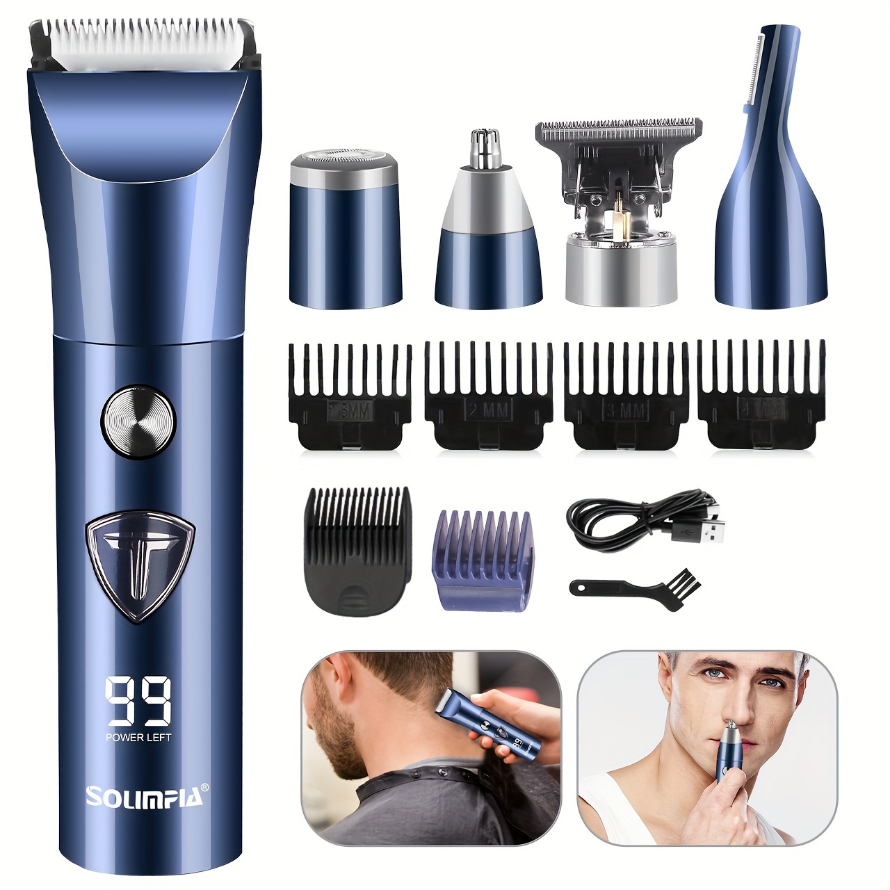 TEMU SOLIMPIA 올인원 전기 헤어 클리퍼 & 코 트리머 - USB 충전식, 빠른 충전, 리튬 배터리 남성용