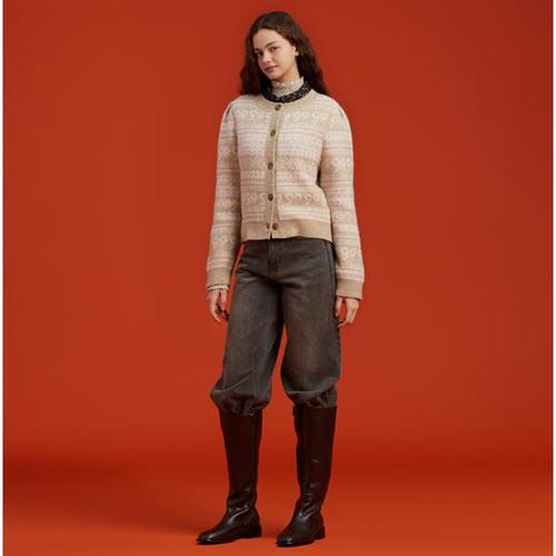 [써스데이아일랜드](T258MCD270W)카라넥 자카드 니트 가디건