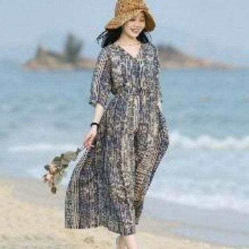 [VY] 여자 마원단 SS 모시 반소매 동남아 롱원피스