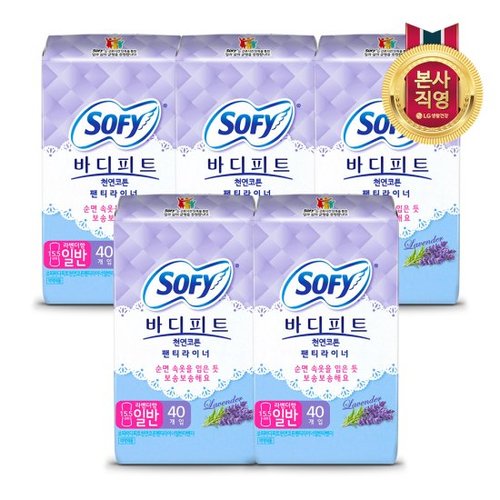 쏘피 바디피트 천연코튼 팬티라이너 라벤더향 40P(일반) x 5팩