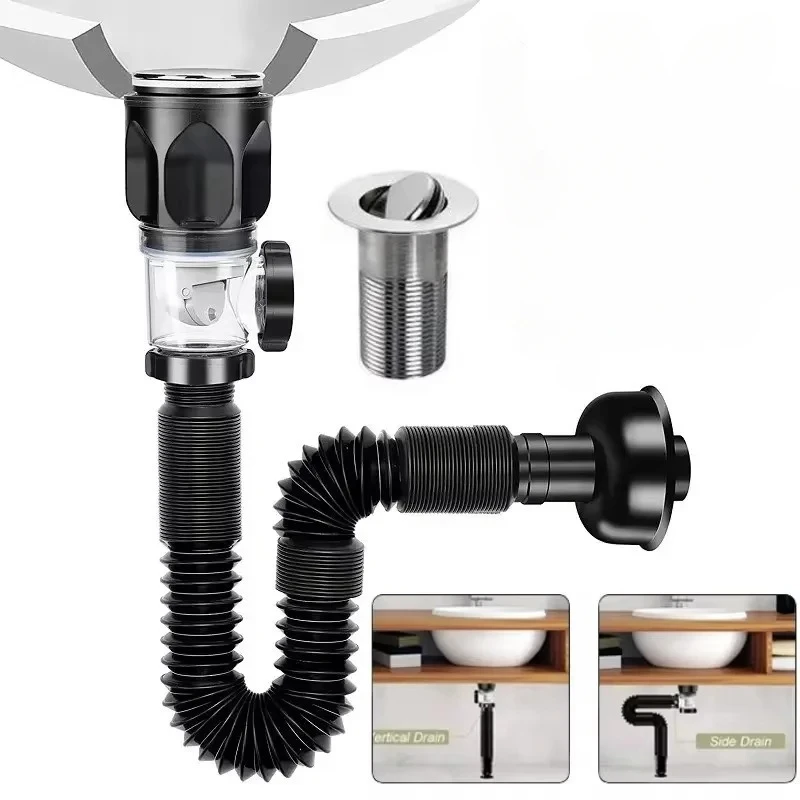 플립 탑 냄새 방지 배수관 세트 주방 싱크대 배수 개폐식 탈취 필터 유연한 하수구 욕실 막힘 방지