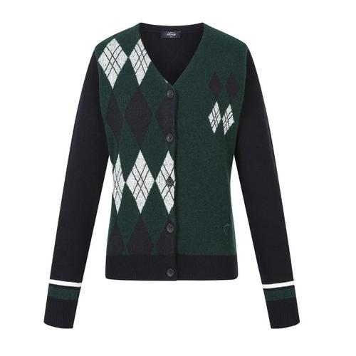 [팬텀]가을 여성 아가일 패턴 브이넥 니트 가디건 / 221D3SD293_GN_IC