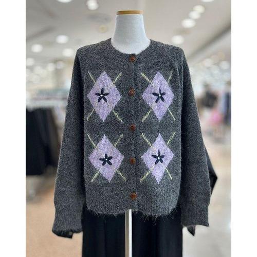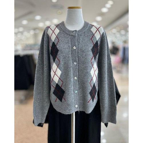 가니 여성 아가일 니트 가디건 그레이 K2284-523