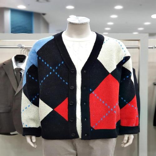 [팬텀]여성 아가일 패턴 브이넥 니트 가디건 MG_US