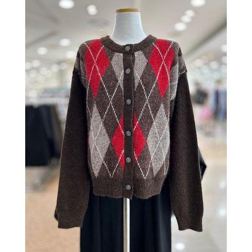 cammello 아가일 패턴 크롭 기장 니트 가디건