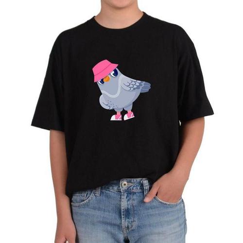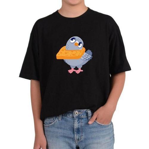 [에이치플러스몰]길단 반팔 USA핏 식빵먹는 비둘기 아기새 식빵목걸이 새먹이그림 다양한색상 전사이즈