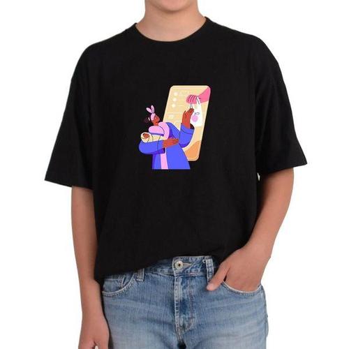 [에이치플러스몰]길단 반팔 USA핏 돌봄경제 AI로봇 아기돌보미 가사도우미 멘토그림 다양한색상 전사이즈