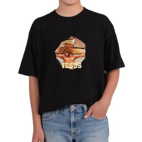 [에이치플러스몰]길단 반팔 USA핏 십자가에 돌아가심 예수님그림 다양한색상 전사이즈