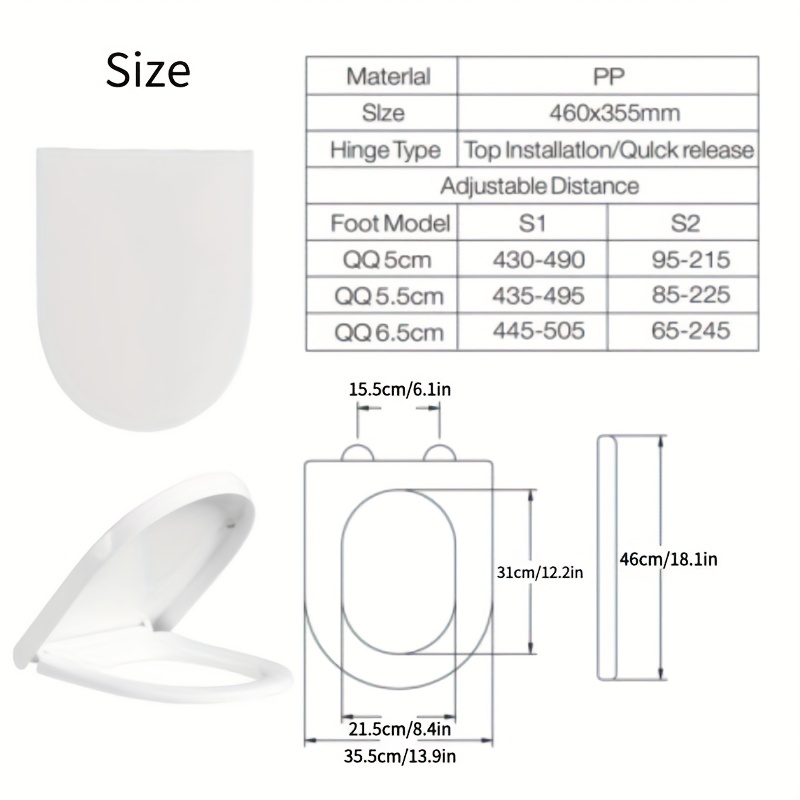 TEMU 1개 대부분의 변기에 호환 가능한 소프트 클로즈 변기 커버 - 도구 없이 간편 설치, 내구성 플라스틱 변기 시트, 위생 및 홈 욕실용 쉬운 스냅 장착|변기부속품|변기커버