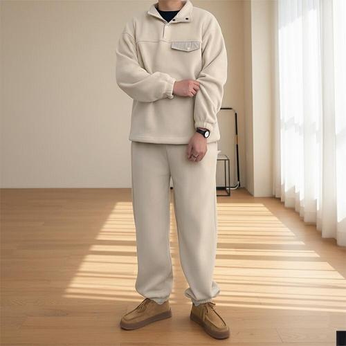 남녀공용 테디 양털 기모 반집업 아노락 맨투맨 조거팬츠 세트