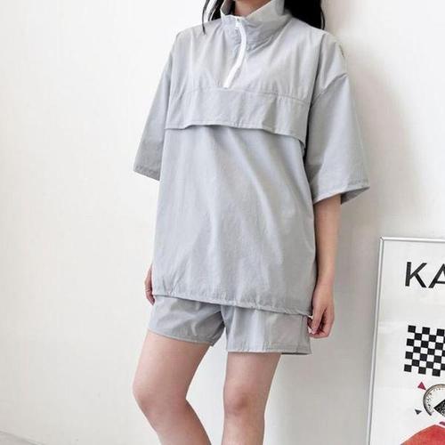 [옷자락]여자 아노락 오버핏 트레이닝 반팔 반바지 세트