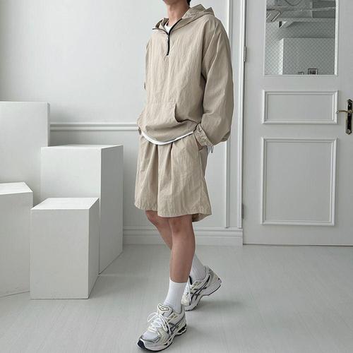 [탑보이][탑보이] 남녀공용 오버핏 후드 아노락 반팔 집업 세트 (N2001)