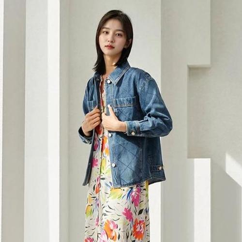 [최초가 89,900원][르포엠]코튼100 모니크 스티치 컬러 데님 자켓