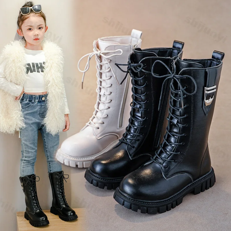 어린이 무릎 길이 부츠 신상품 2025 가을 영국 소녀 공주 부츠 아동용 지퍼 편안한 논슬립 버클 롱 부츠
