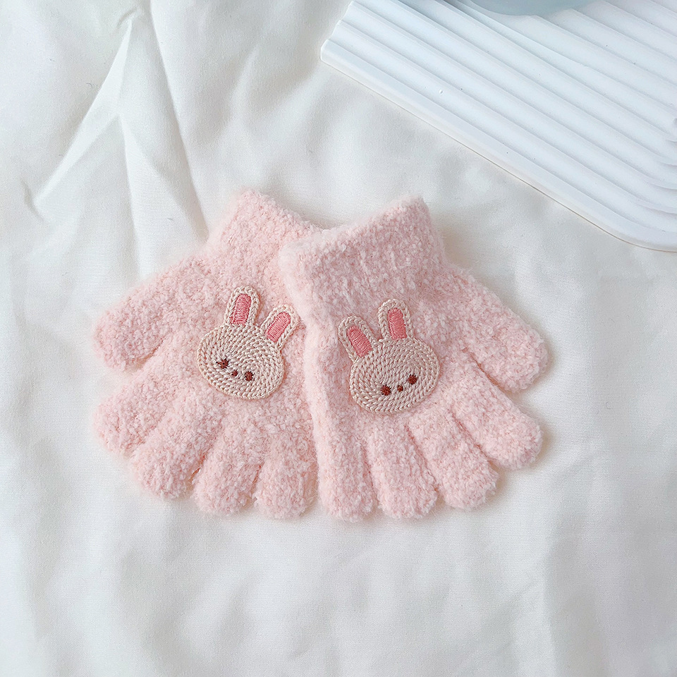 4-11세 만화 토끼 다섯 손가락 어린이 장갑 겨울 두꺼운 반손가락 플립 니트 장갑 겨울 신상 따뜻한 장갑