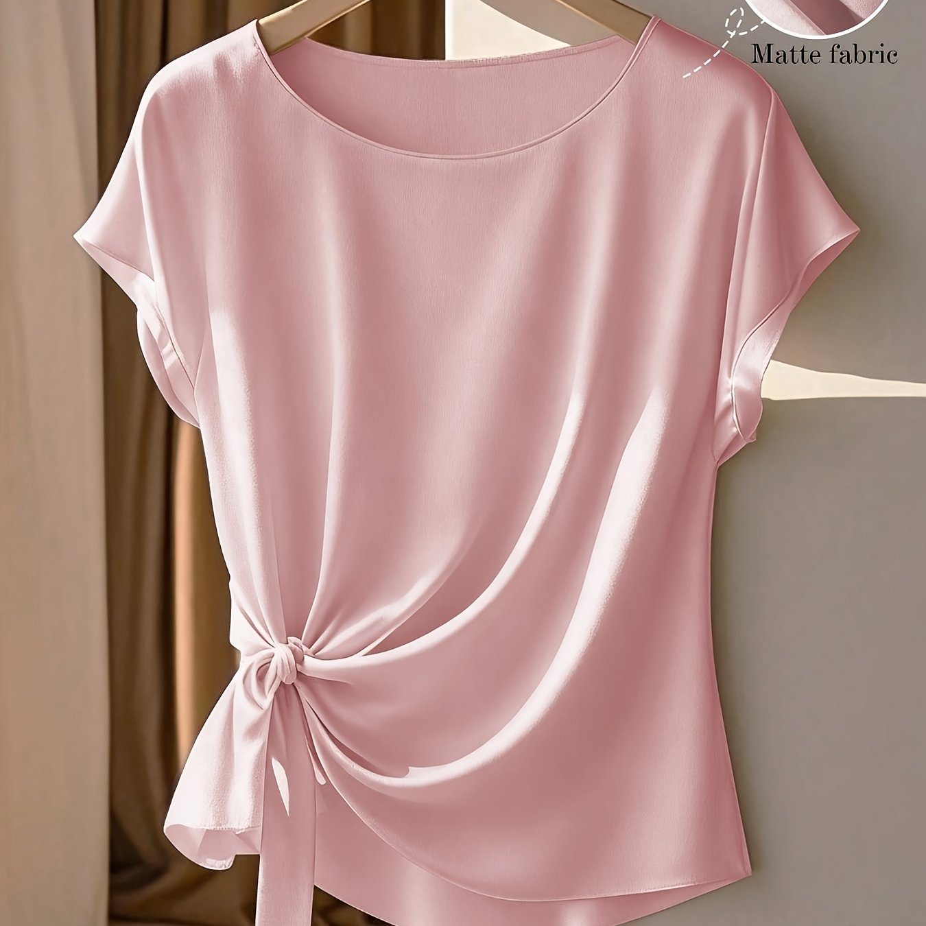 TEMU 플러스 사이즈, Chizhaoxue 플러스 사이즈 여성용 우아한 반팔 라운드 넥 러플 트림 타이 보우 블ouses, 카키, 봄 여름용