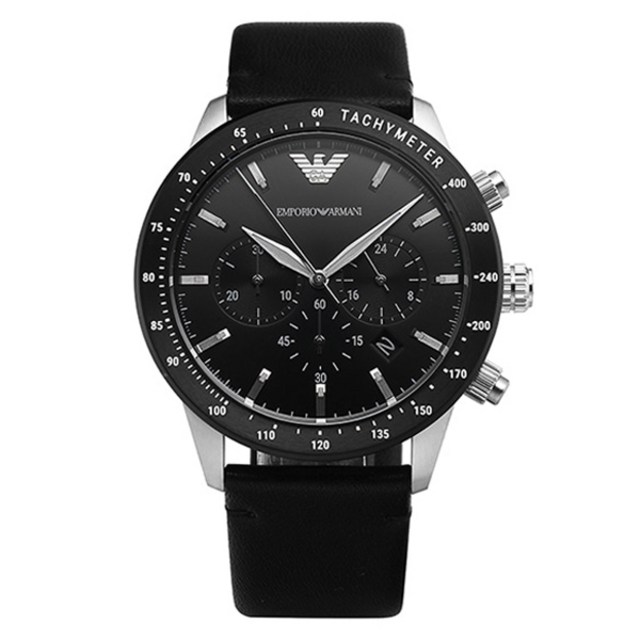 알마니 AR1918 스포츠 라운드 데일리 올블랙 크로노그래피 남자 가죽 시계 d