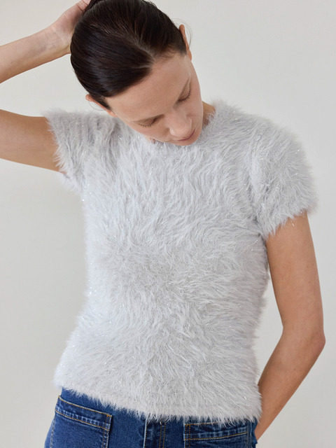 [이보크에라] 엔젤 펄 캡소매 반팔 니트(펄그레이)