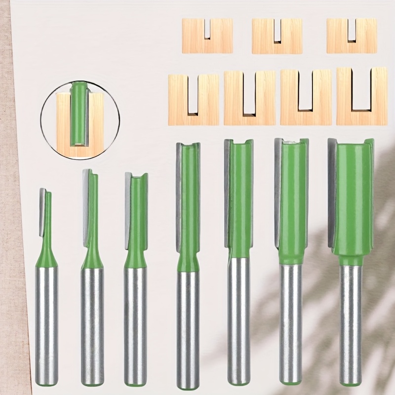 TEMU 고품질 텅스텐 스틸 팁이 있는 1/4인치 샹크 직선 블레이드 세트 7개, 녹 방지 코팅, 견고하고 내구성 있는 3-12mm 트리밍 및 그루빙용, 무봉합 용접, 통합 핸들 포함, 전문가 및 DIY 애호가를 위한 이상적인 세트