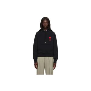 AMI Paris 후드 SSENSE 익스클루시브 블랙 아미 드 꾀흐 후디 222482F097056
