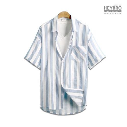 [헤이브로]남성 반팔 스트라이프 아사 셔츠 남방 그리스스카이