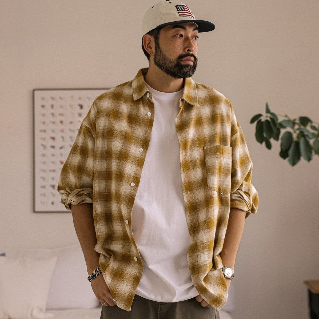 체크모드 배색 카라 포켓 루즈핏 남방 (4color)
