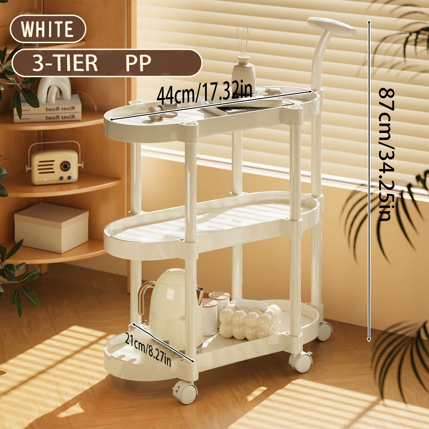 TEMU 휠이 달린 화이트 롤링 소파 사이드 테이블 - 침실, 발코니 또는 거실에서 물건 정리에 완벽한 2단 플라스틱 카트, 실용성을 향상시키는 수직 선반